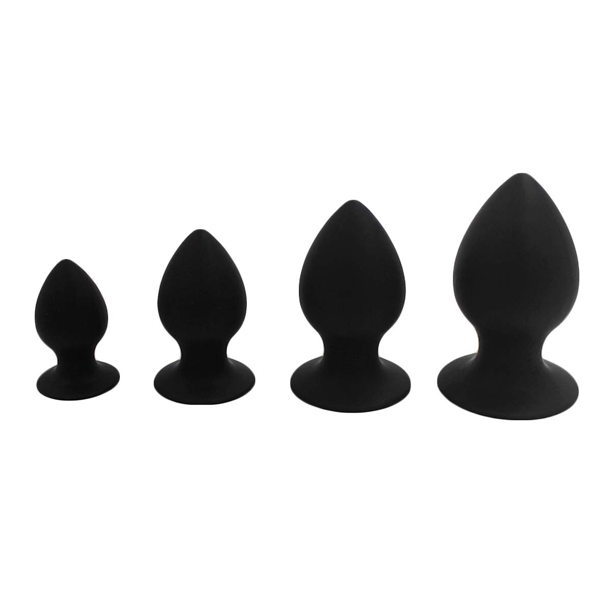 Analplug-Set in schwarz aus hautfreundlichem Silikon zur Anal-Dehnung. Bestehend aus vier Plugs mit einem Durchmesser von 4,2 – 7,2 cm. Hochwertige Verarbeitung. Jetzt Buttplugs bestellen!