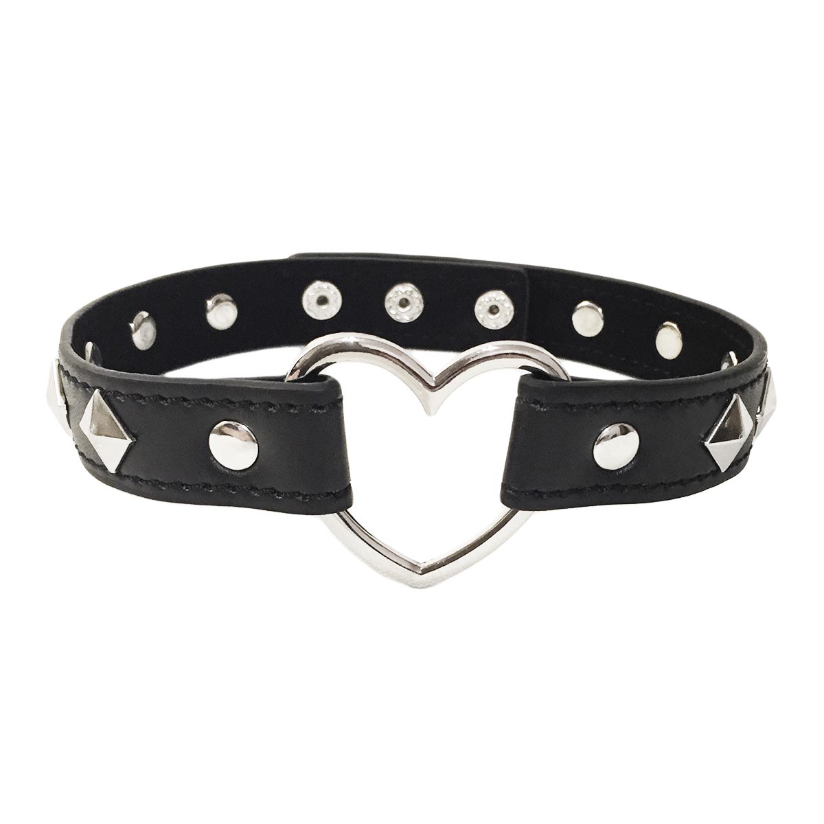 Das Black-Love Halsband mit Druckknöpfen ist für Bondage-Outfits ideal. Ein besonderer Hingucker ist das Metallherz und die Nietenverzierungen auf dem Riemen. Jetzt kaufen.