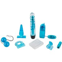 Mit dem 8-teiligen Toy-Set „Blue Appetizer“ kommst du Solo auf ebenso auf deine Kosten wie beim gemeinsamen Entdecken dieser Sammlung: Das Set umfasst neben einem Multispeed-Vibrator, Liebeskugeln und einem Analplug auch eine Penismanschette mit Reiznoppen und Wellen, einen Penis-Hoden-Ring mit Kugeln und Noppen zur Klitorisstimulation, ein Vibro-Ei sowie ein Vibro-Bullet, das u.a. in den die ebenfalls enthaltene Fingerhülle mit G-Punkt-Spitze eingesetzt werden kann. Wer in Anbetracht dieser Toy-Vielfalt nicht auf anregende Ideen kommt, hat das Set noch nicht ausprobiert. Multispeed-Vibrator mit angedeuteter Eichel und reizstrukturiertem Schaft (17,4 cm lang, Ø 2,8-3,4 cm). Penismanschette mit Reiznoppen und Wellen (7 cm lang, Innen-Ø 3,3 cm, sehr dehnbar). Vibro-Ei mit kabelgebundenem Bedienelement (5,5 cm lang, Ø max. 2,5 cm; Kabel 66 cm lang). Vibro-Bullet (6 cm lang, Ø…