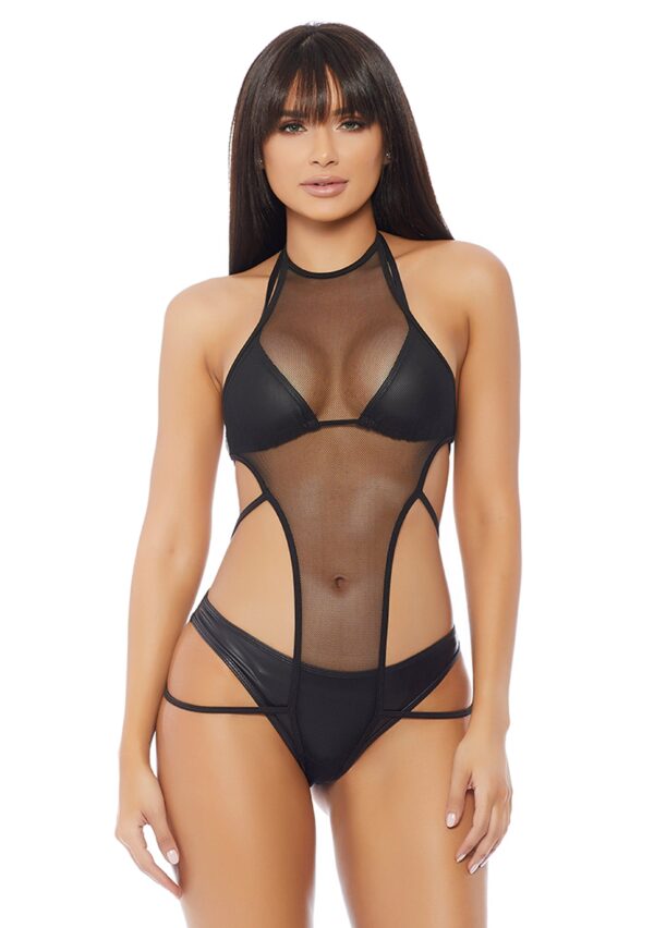 Der erotische Body hat einen verstellbaren Neckholder.. Eigenschaften:. – Material aus 90 % Polyester und 10 % Elasthan. – mit schwarzen Bändern zum Schnüren. – inklusive Tanga. – Mikronetz. – Handwäsche empfohlen. – Einheitsgröße S-L