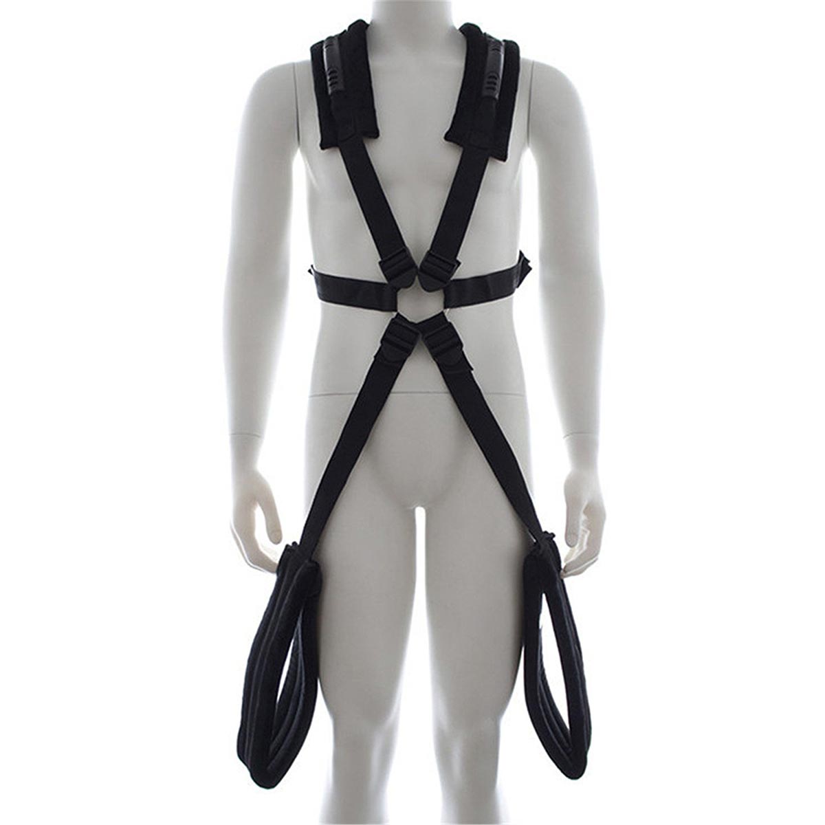 Der Bondage Fessel Body-Harness in schwarz überzeugt durch eine Plüschfütterung für eine bequeme, spreizbeinige Haltung. Jetzt Bondage-Geschirr kaufen.
