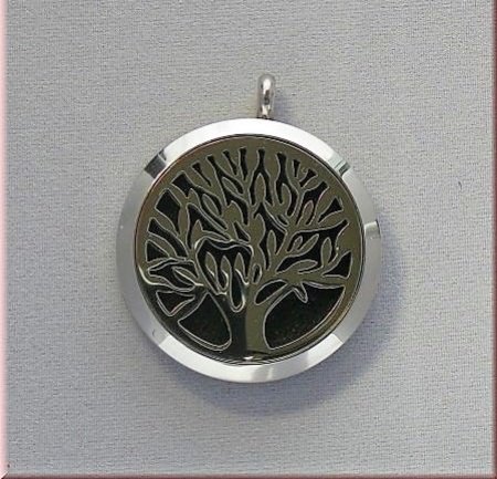 Unsere Duftanhänger mit Magnetverschluss sind zur Zeit wohl die neuesten und exklusivsten Anhänger im Bereich von Duft-Parfümanhänger. Dieser große Edestahlanhänger mit Magnetverschluss hat einen Durchmesser von 3 cm und lässt sich hervorragend als “statement” an längeren Ketten tragen. Besonders hübsch: die ausgeschnittene “Duftöffnung” in Form eines Lebensbaumes. Der Anhänger wird wie ein Medallion aufgeklappt (Öffnungswinkel ca. 45°) . Die mitgelieferte, schwarze Filzeinlage kann je nach Belieben mit Parfüms und Aromaölmischungen beträufelt werden. Um den Hals getragen wird dieser Anhänger zu einem wunderschönen, “duften” Schmuckstück. Die Lieferung erfolgt incl. schwarzer Filzeinlage, excl. Kette.