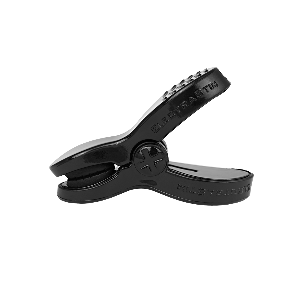 Die bipolare Elektroklemme ElectraClamp ist die ideale Elektrode für die Stimulation kleiner Körperstellen. Dank ihres sanften Griffs können Sie diese E-Stim-Elektroklemme unterhalb der Taille verwenden und so Ihre kleinsten Lustzonen präzise stimulieren.. Geeignet für Penis, Hoden, Damm, Schamlippen und Klitoris; die Klemme ist verstellbar und kann an jeder schlaffen Hautstelle befestigt werden.. Tragen Sie vor dem Anbringen etwas Leitgel (separat erhältlich) auf die Kontaktpunkte auf, um eine deutlichere, resonantere Stimulation zu erleben. Schließen Sie die bipolaren Kontakte an einen beliebigen ElectraStim-Stimulator (separat erhältlich) an und spüren Sie das angenehme Kribbeln und die Kontraktionen des Elektrosex mit noch mehr Präzision.. Diese leichte Klemme aus glattem ABS-Kunststoff mit leitfähigen Silikonpads ist unauffällig und bietet dennoch eine überraschend starke Stimulation – egal, an welcher kleinen Stelle Sie sie anbringen.. Spezifikationen. Länge: 60 mm. Breite: 40 mm. Anschluss: 2 mm. Gewicht: 14 g. Material: ABS-Kunststoff, phthalatfreies leitfähiges Silikon. Polzahl: 2 (bipolar). Lieferumfang. 1x ElectraClamp. 1x Mikrofaser-Aufbewahrungstasche. 1x Bedienungsanleitung (EN/FR/DE/NL/ES/IT)