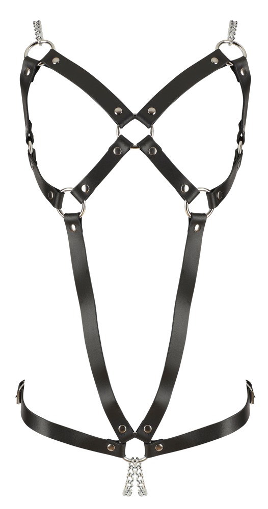 Das Ganzkörper-Geschirr ist eine wahre Augenweide und durch die verführerischen Lederriemen, Metallringen, Metallketten-Trägern und den Ouvert-Schritt ein aufregender Hingucker. Jetzt kaufen.
