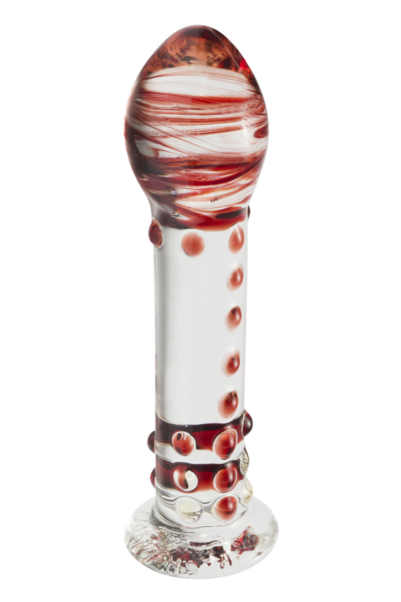 Der feuerrote Farben-Mix macht diesen Glasdildo zu einem ausgefallenen Kunstwerk auf Ihrem Nachttisch. Doch wenn sein feurig roter Kopf in Sie eindringt, die wunderschönen Noppen sich an Ihren Lustnerven reiben, werden Sie auch seine Liebesqualitäten zu schätzen wissen. Auch Ihr G-Punkt kommt nicht zu kurz.