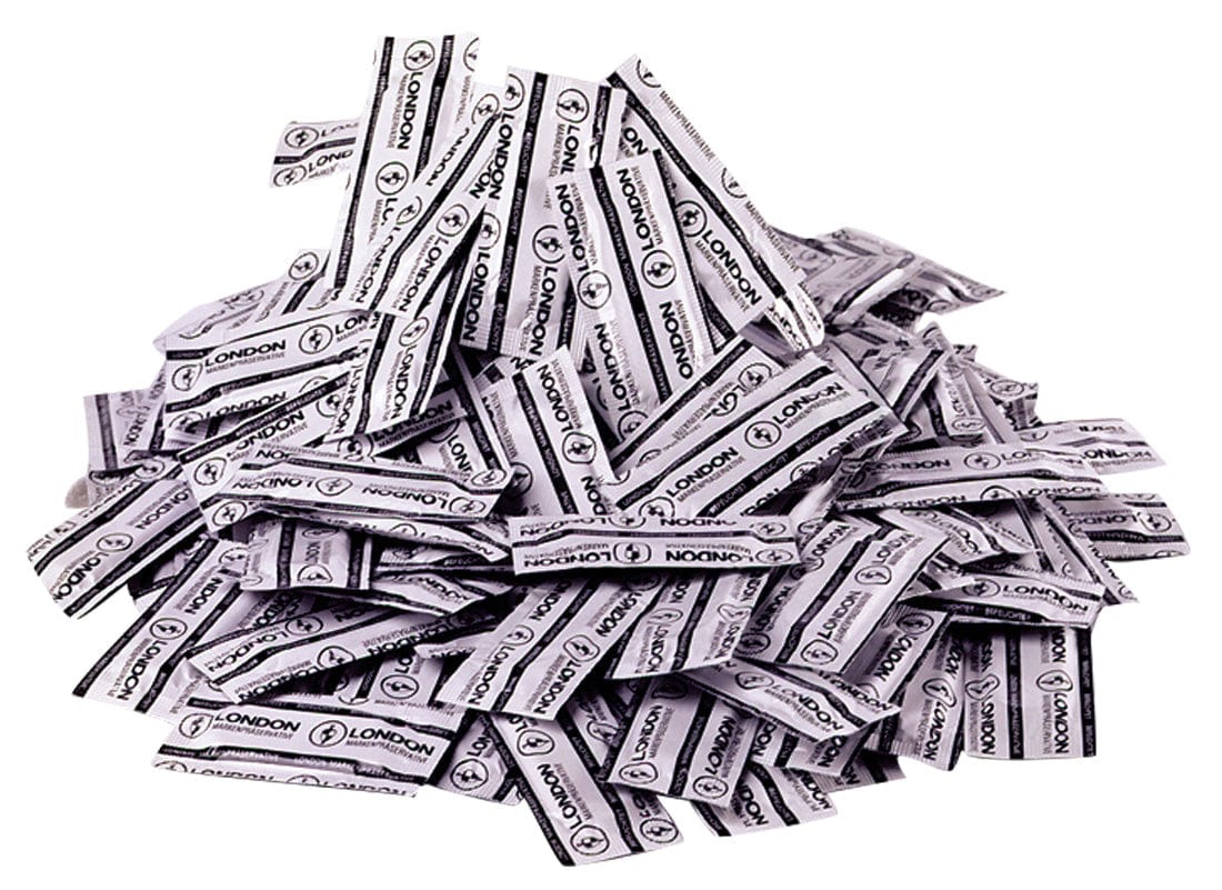 1000 Markenkondome von London einzeln verpackt.. – Stärke 0,065 mm. – Durchmesser 52 mm. – Feuchtbeschichtung