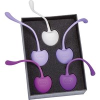 Wie ein Körbchen Kirschen wirken die fünf weiß und fliederfarbenen Liebeskugeln von Minds of Love! Doch zum Vernaschen sind die kleinen Früchtchen nicht, vielmehr trainieren sie deinen Beckenboden und intensivieren so deine Orgasmen und Empfindungen beim Liebesspiel. Auch nach einer Geburt oder bei Blasenschwäche sind die kirschrunden Kugeln wahre Helfer. Die unterschiedlich schweren Kugeln (30g, 40g, 60g, 85g, 110g) ermöglichen dir ein punktgenaues und langsam ansteigendes Trainingsprogramm. Beginne mit der leichtesten Kugel und steigere dich dann kontinuierlich. Jede Liebeskirsche ist aus streichelzartem Silikon gefertigt und mit besitzt im Inneren einen Metallball. Diskret und dabei stark stimulieren sie deine innere Muskulatur und lassen sich dank ihrer Form leich tund angenehm einführen. Das tropfenförmige Rückholbändchen ermöglicht ein sicheres Entfernen. Hübsch anzusehen und da…
