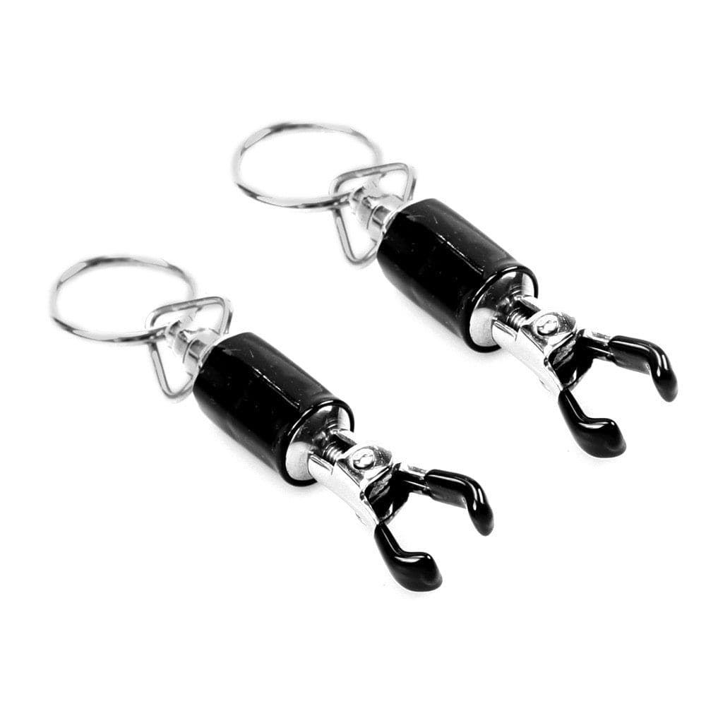 Zwei Klemmen mit einem Ring am Ende zur Befestigung von Ketten, Fesseln usw.. Eigenschaften:. – durch Schrauben ist der Druck verstellbar. – Klemmen mit Gummi überzogen. – starker Druck. – Klemmen 7,5 cm lang. – aus Edelstahl