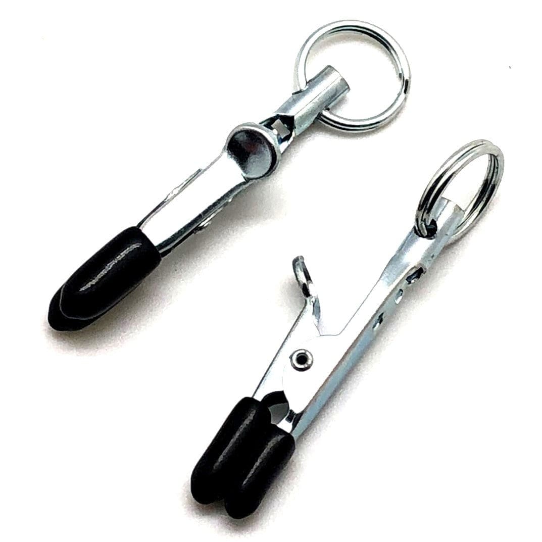 Diese Nippelklemmen üben einen sehr starken Druck aus.. Eigenschaften:. – mit Gummiüberzug an den Spitzen. – aus Metall. – mit Ring zur Befestigung beliebiger Toys. – starker Druck. – Klemmlänge 5,5 cm x 0,5 cm
