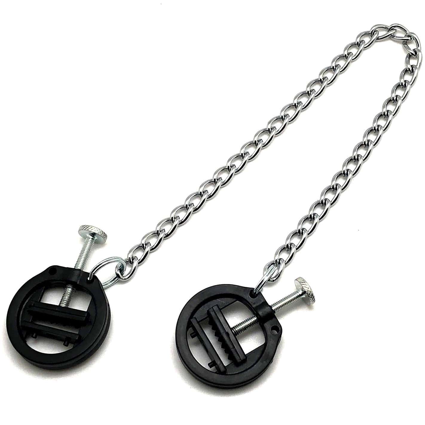 Diese Nippelklemmen sind genau das richtige für Dich und Deinen Partner.. Eigenschaften:. – einfache Anwendung. – mit einer Kette verbunden. – Druck mit einer Schraube verstellbar. – Kettenlänge 30 cm. – Duchmesser 4 cm. – mit Zacken für zusätzlichen Schmerz