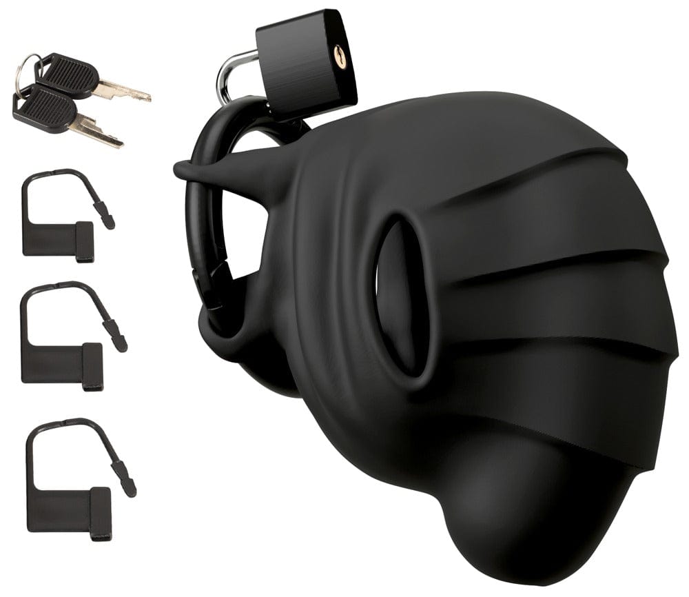 Lustvolle Enthaltsamkeit!. Der Silikon-Keuschheitskäfig Cock & ball cage von Black Velvets schließt Penis und Hoden aufregend ein. Perfekt auf die männliche Anatomie abgestimmt, lässt sich der flexible Käfig leicht an- und ablegen. Das samtig softe Silikon passt sich optimal und komfortabel an. Ein fester Ring hält den leichten Silikon-Käfig fest und sicher am Gemächt. Durch eine untere Öffnung ist urinieren möglich. Selbstverständlich ist der Penis-/Hodenkäfig abschließbar – 1 Vorhängeschloss mit Schlüsseln sowie 3 Einwegschlösser sind inklusive.. Einführtiefe 10 cm, 6 cm breit, Ring-Ø 5,4 cm.. Gewicht 95 g.. Silikon.